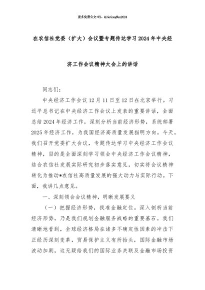 【七哥公文】2024年:在农信社党委(扩大)会议暨专题传达学习2024年中央经济工作会议精神大会上的讲话+更多免费公文+VX:QiGeGongWen2024