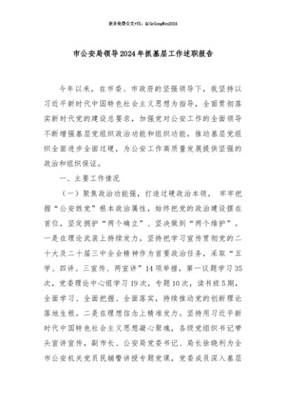 / 【七哥公文】2024年:市公安局领导2024年抓基层工作述职报告+更多免费公文+VX:QiGeGongWen2024