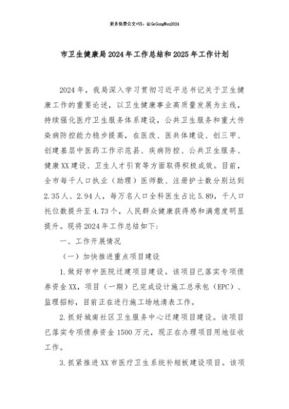 【七哥公文】2024年:市卫生健康局2024年工作总结和2025年工作计划+更多免费公文+VX:QiGeGongWen2024
