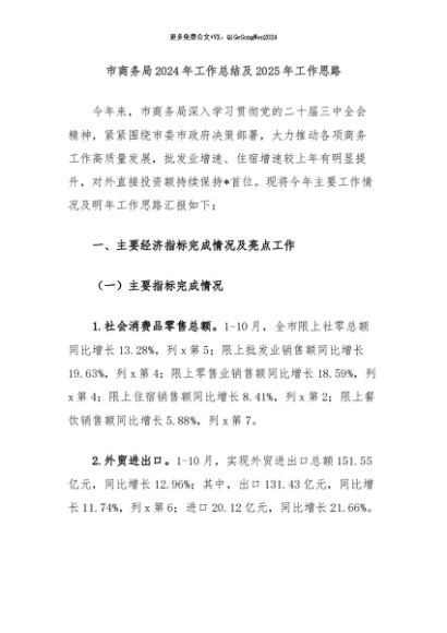 / 【七哥公文】2024年:市商务局2024年工作总结及2025年工作思路+更多免费公文+VX:QiGeGongWen2024
