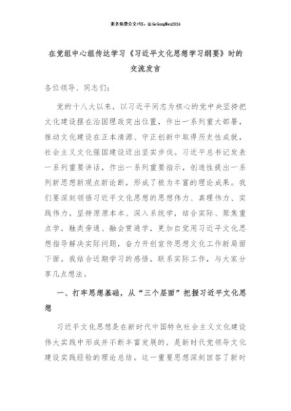 【七哥公文】2024年:在党组中心组传达学习《习近平文化思想学习纲要》时的交流发言+更多免费公文+VX:QiGeGongWen2024