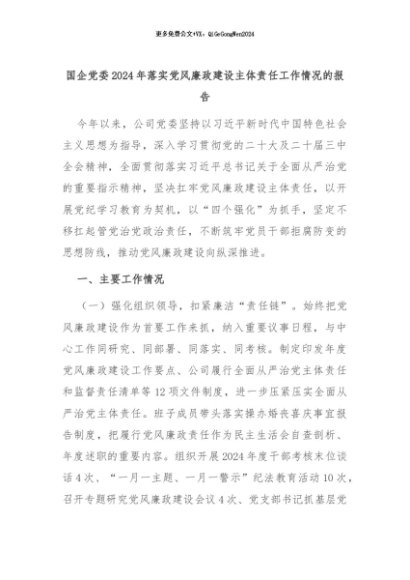 【七哥公文】2024年:国企党委2024年落实党风廉政建设主体责任工作情况的报告+更多免费公文+VX:QiGeGongWen2024