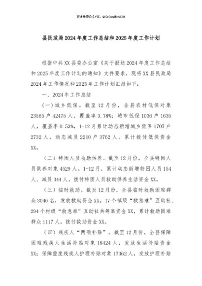 【七哥公文】2024年:县民政局2024年度工作总结和2025年度工作计划+更多免费公文+VX:QiGeGongWen2024