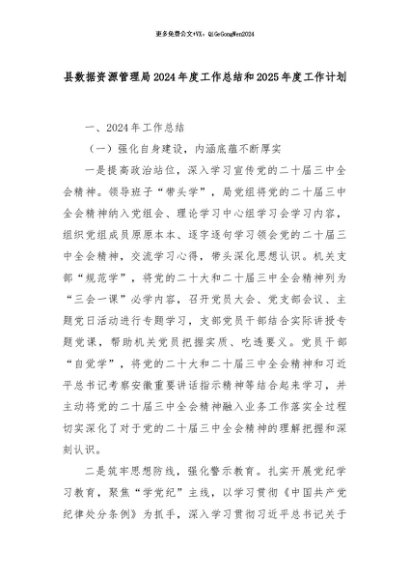 【七哥公文】2024年:县数据资源管理局2024年度工作总结和2025年度工作计划+更多免费公文+VX:QiGeGongWen2024