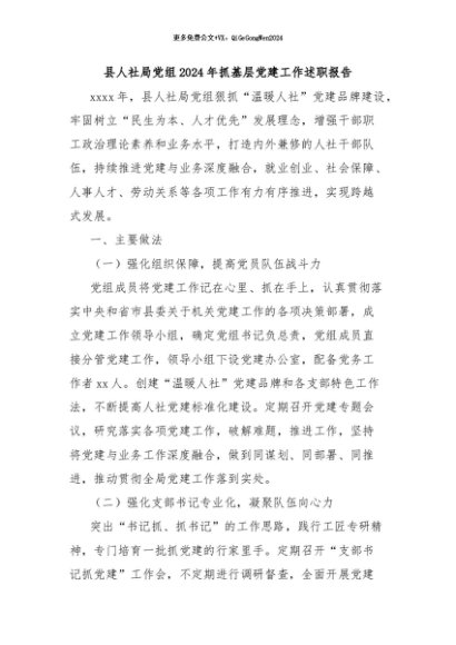 / 【七哥公文】2024年:县人社局党组2024年抓基层党建工作述职报告+更多免费公文+VX:QiGeGongWen2024