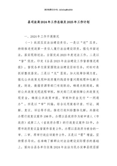 / 【七哥公文】2024年:县司法局2024年工作总结及2025年工作计划+更多免费公文+VX:QiGeGongWen2024