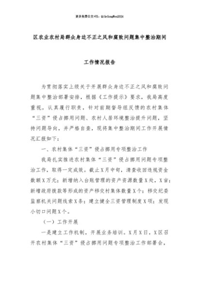【七哥公文】2024年:区农业农村局群众身边不正之风和腐败问题集中整治期间工作情况报告+更多免费公文+VX:QiGeGongWen2024