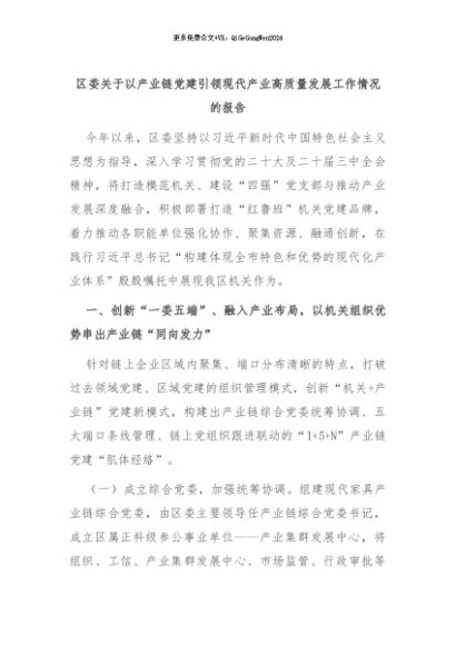 【七哥公文】2024年:区委关于以产业链党建引领现代产业高质量发展工作情况的报告+更多免费公文+VX:QiGeGongWen2024