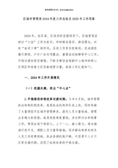 【七哥公文】2024年:区城市管理局2024年度工作总结及2025年工作思路+更多免费公文+VX:QiGeGongWen2024