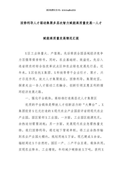 【七哥公文】2024年:因势利导人才驱动集聚多层次智力赋能高质量发展—人才赋能高质量发展情况汇报+更多免费公文+VX:QiGeGongWen2024