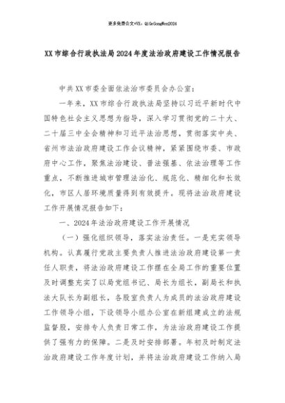【七哥公文】2024年:XX市综合行政执法局2024年度法治政府建设工作情况报告+更多免费公文+VX:QiGeGongWen2024