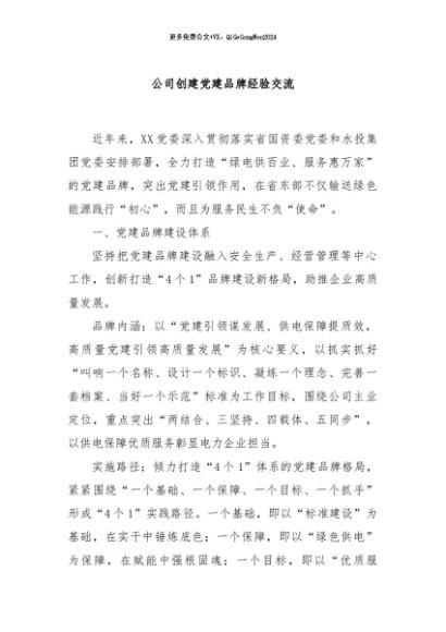 / 【七哥公文】2024年:公司创建党建品牌经验交流+更多免费公文+VX:QiGeGongWen2024