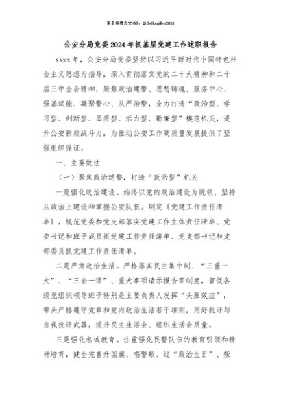 / 【七哥公文】2024年:公安分局党委2024年抓基层党建工作述职报告+更多免费公文+VX:QiGeGongWen2024