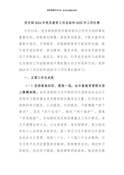 【七哥公文】2024年:党支部2024年党员教育工作总结和2025年工作打算+更多免费公文+VX:QiGeGongWen2024