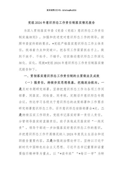 / 【七哥公文】2024年:党组2024年意识形态工作责任制落实情况报告+更多免费公文+VX:QiGeGongWen2024