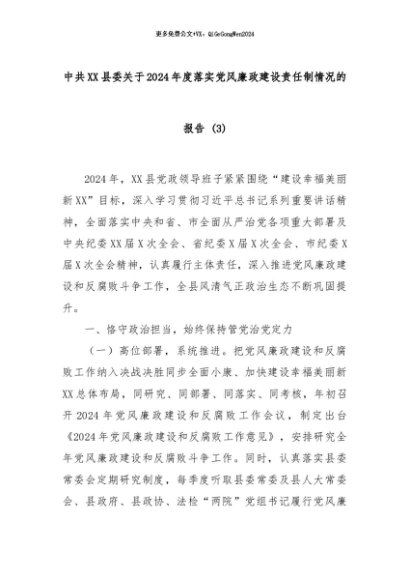 【七哥公文】2024年:中共XX县委关于2024年度落实党风廉政建设责任制情况的报告 (3)+更多免费公文+VX:QiGeGongWen2024