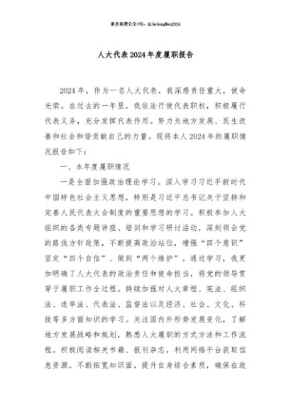 / 【七哥公文】2024年:人大代表2024年度履职报告+更多免费公文+VX:QiGeGongWen2024