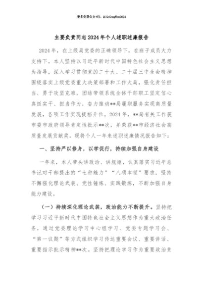 / 【七哥公文】2024年:主要负责同志2024年个人述职述廉报告+更多免费公文+VX:QiGeGongWen2024