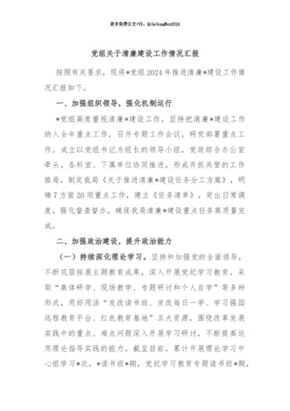 / 【七哥公文】2024年:党组关于清廉建设工作情况汇报+更多免费公文+VX:QiGeGongWen2024