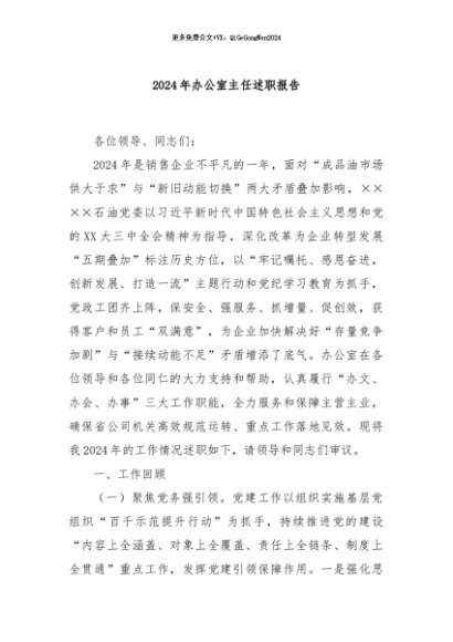 / 【七哥公文】2024年:2024年办公室主任述职报告+更多免费公文+VX:QiGeGongWen2024