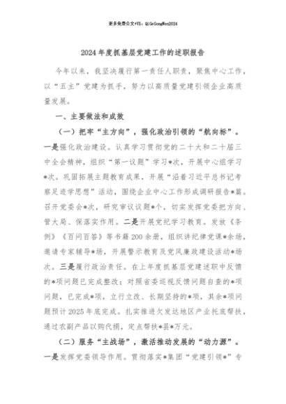 / 【七哥公文】2024年:2024年度抓基层党建工作的述职报告+更多免费公文+VX:QiGeGongWen2024