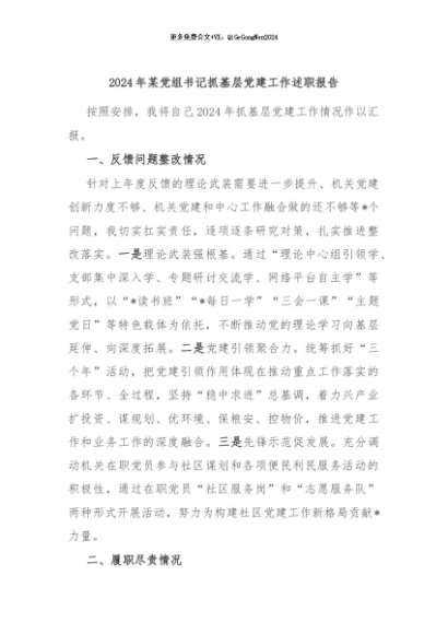 / 【七哥公文】2024年:2024年某党组书记抓基层党建工作述职报告+更多免费公文+VX:QiGeGongWen2024