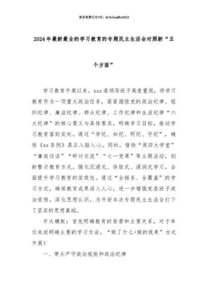 【七哥公文】2024年:2024年最新最全的学习教育的专题民主生活会对照新“五个方面”+更多免费公文+VX:QiGeGongWen2024