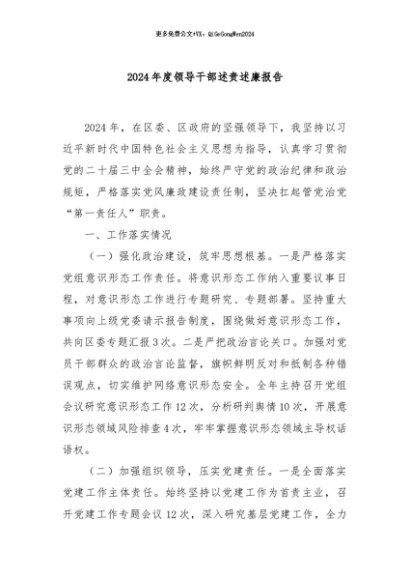 / 【七哥公文】2024年:2024年度领导干部述责述廉报告+更多免费公文+VX:QiGeGongWen2024