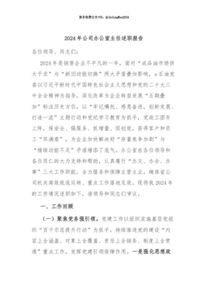 / 【七哥公文】2024年:2024年公司办公室主任述职报告+更多免费公文+VX:QiGeGongWen2024