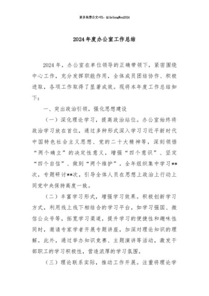 / 【七哥公文】2024年:2024年度办公室工作总结+更多免费公文+VX:QiGeGongWen2024