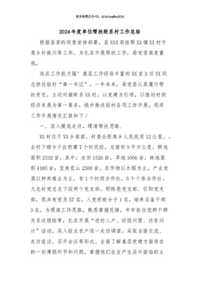 / 【七哥公文】2024年:2024年度单位帮扶联系村工作总结+更多免费公文+VX:QiGeGongWen2024