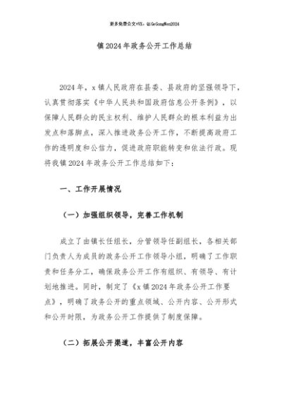 【七哥公文】2024年:镇2024年政务公开工作总结+更多免费公文+VX:QiGeGongWen2024