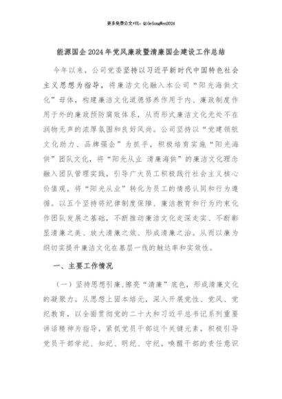 / 【七哥公文】2024年:能源国企2024年党风廉政暨清廉国企建设工作总结+更多免费公文+VX:QiGeGongWen2024