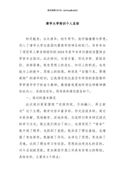 / 【七哥公文】2024年:清华大学培训个人总结+更多免费公文+VX:QiGeGongWen2024
