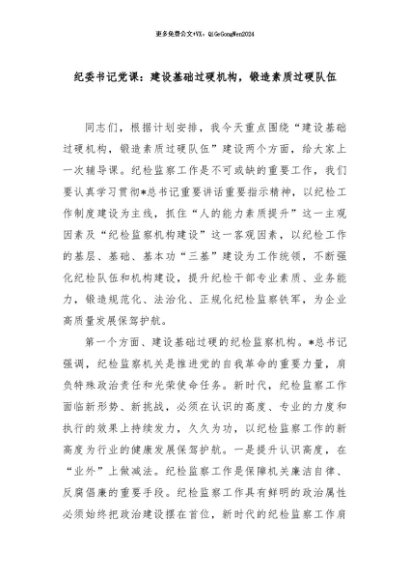 / 【七哥公文】2024年:纪委书记党课:建设基础过硬机构,锻造素质过硬队伍+更多免费公文+VX:QiGeGongWen2024