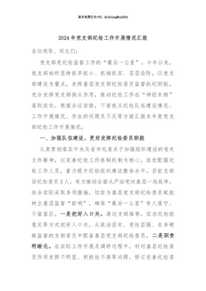 / 【七哥公文】2024年:2024年党支部纪检工作开展情况汇报+更多免费公文+VX:QiGeGongWen2024