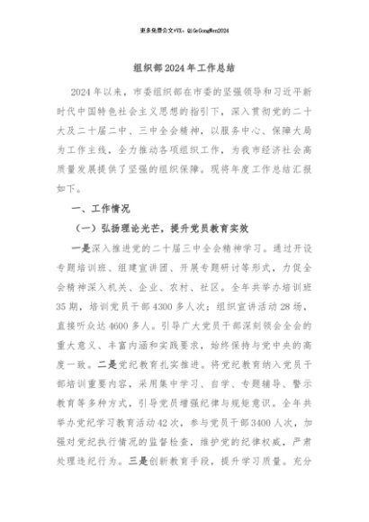 / 【七哥公文】2024年:组织部2024年工作总结+更多免费公文+VX:QiGeGongWen2024