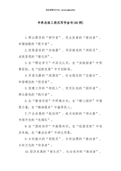 / 【七哥公文】2024年:(40例)年终总结三段式写作金句+更多免费公文+VX:QiGeGongWen2024