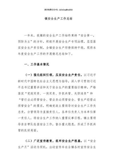 / 【七哥公文】2024年:镇安全生产工作总结+更多免费公文+VX:QiGeGongWen2024