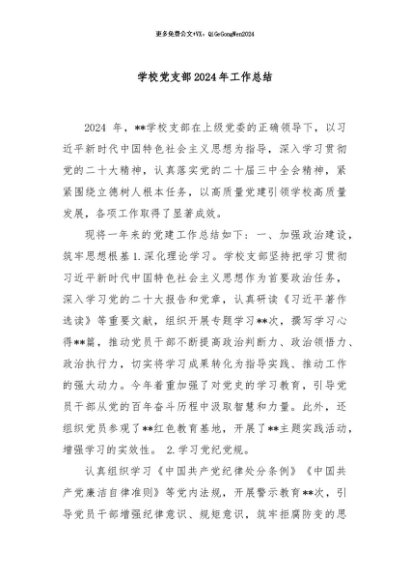 / 【七哥公文】2024年:学校党支部2024年工作总结+更多免费公文+VX:QiGeGongWen2024