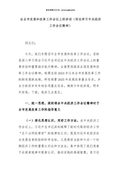 【七哥公文】2024年:在全市发展和改革工作会议上的讲话(传达学习中央经济工作会议精神)+更多免费公文+VX:QiGeGongWen2024