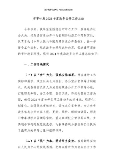 / 【七哥公文】2024年:市审计局2024年度政务公开工作总结+更多免费公文+VX:QiGeGongWen2024