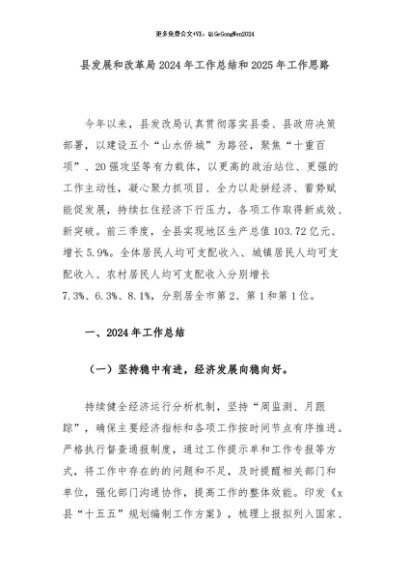 【七哥公文】2024年:县发展和改革局2024年工作总结和2025年工作思路+更多免费公文+VX:QiGeGongWen2024