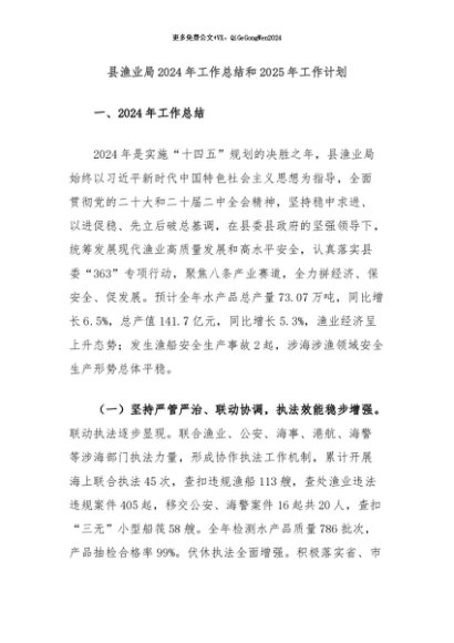 / 【七哥公文】2024年:县渔业局2024年工作总结和2025年工作计划+更多免费公文+VX:QiGeGongWen2024