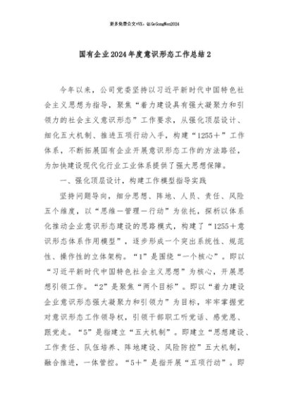 / 【七哥公文】2024年:国有企业2024年度意识形态工作总结2+更多免费公文+VX:QiGeGongWen2024