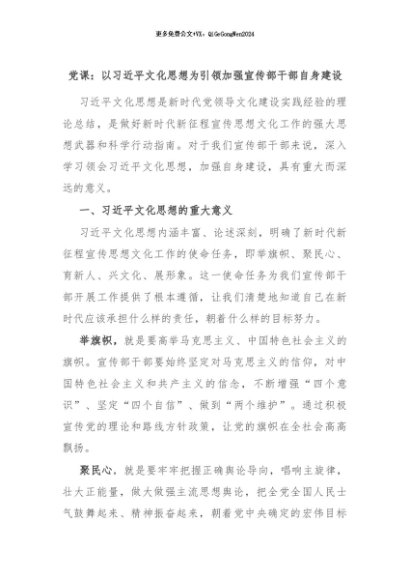 【七哥公文】2024年:党课:以习近平文化思想为引领加强宣传部干部自身建设+更多免费公文+VX:QiGeGongWen2024