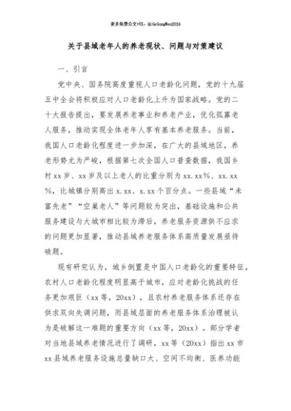 / 【七哥公文】2024年:关于县域老年人的养老现状、问题与对策建议+更多免费公文+VX:QiGeGongWen2024
