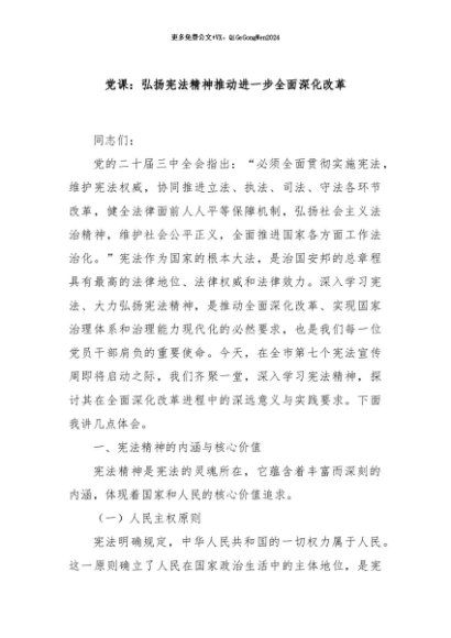 / 【七哥公文】2024年:党课:弘扬宪法精神推动进一步全面深化改革+更多免费公文+VX:QiGeGongWen2024
