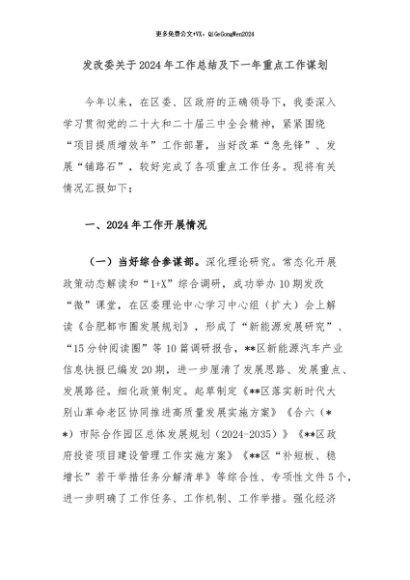 / 【七哥公文】2024年:发改委关于2024年工作总结及下一年重点工作谋划+更多免费公文+VX:QiGeGongWen2024