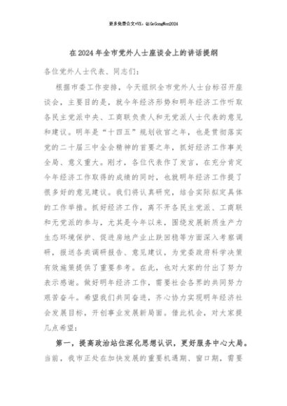 / 【七哥公文】2024年:在2024年全市党外人士座谈会上的讲话提纲+更多免费公文+VX:QiGeGongWen2024